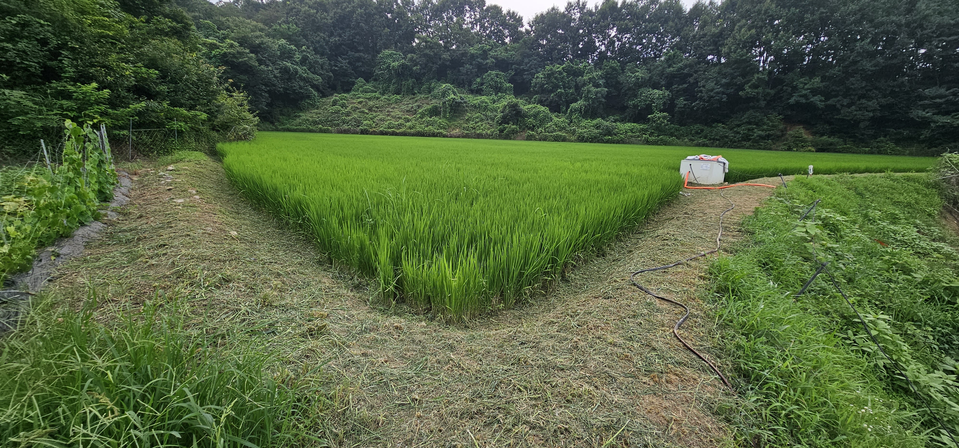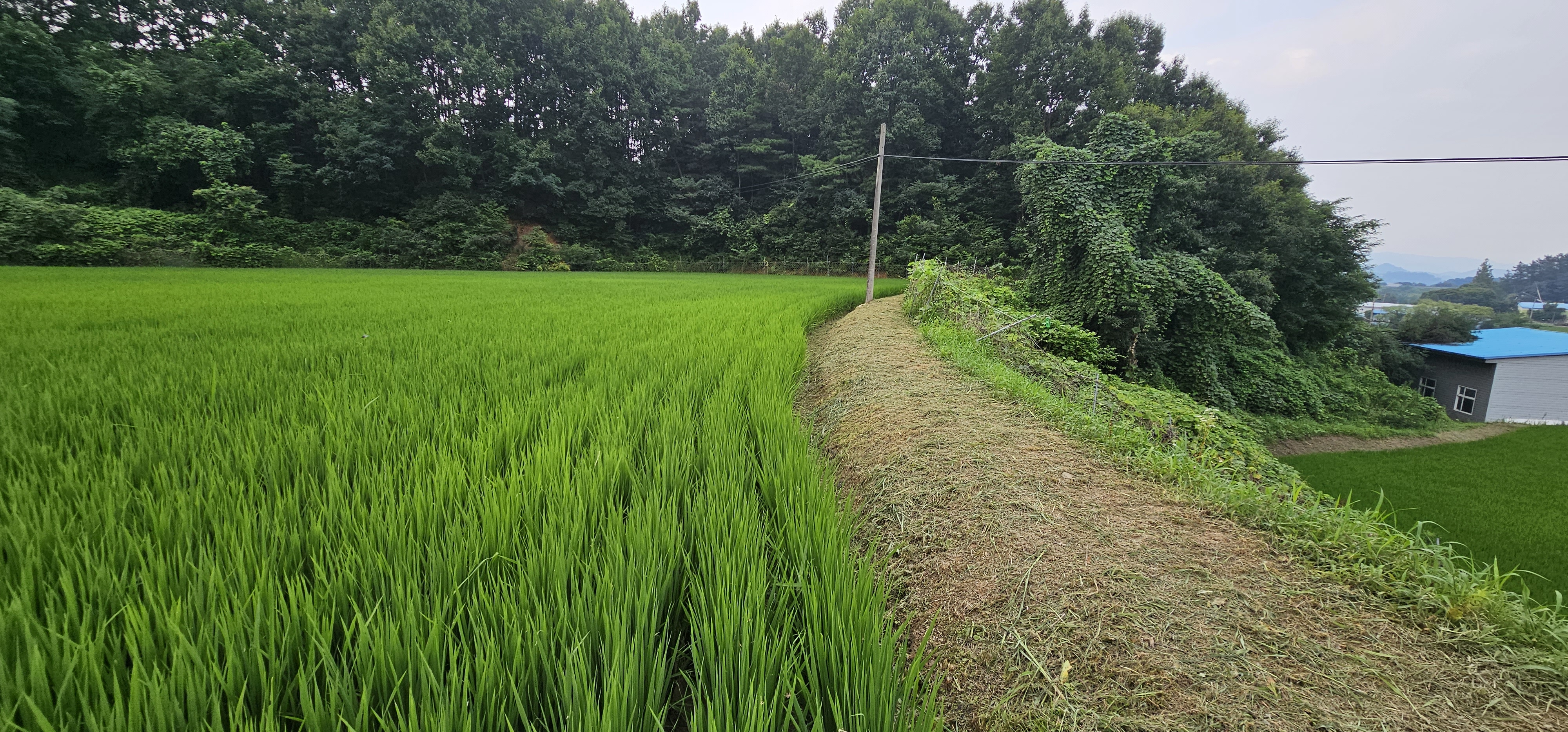 알베기 시작 논둑 예초작업ㅎ 후 물대기 시작