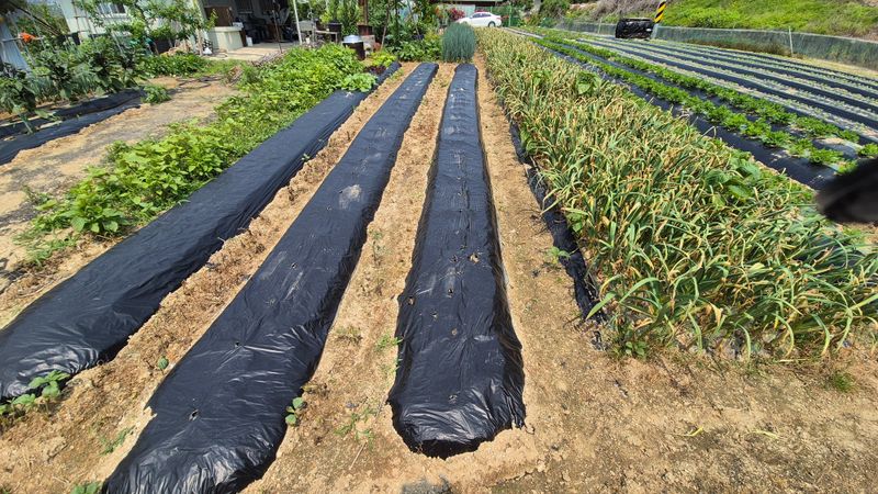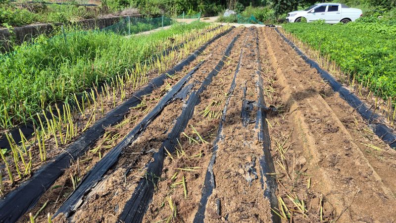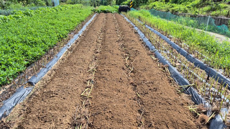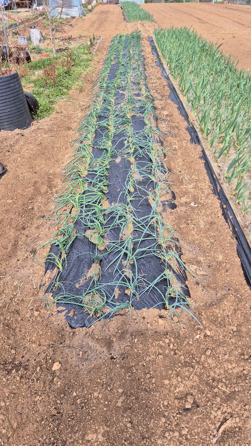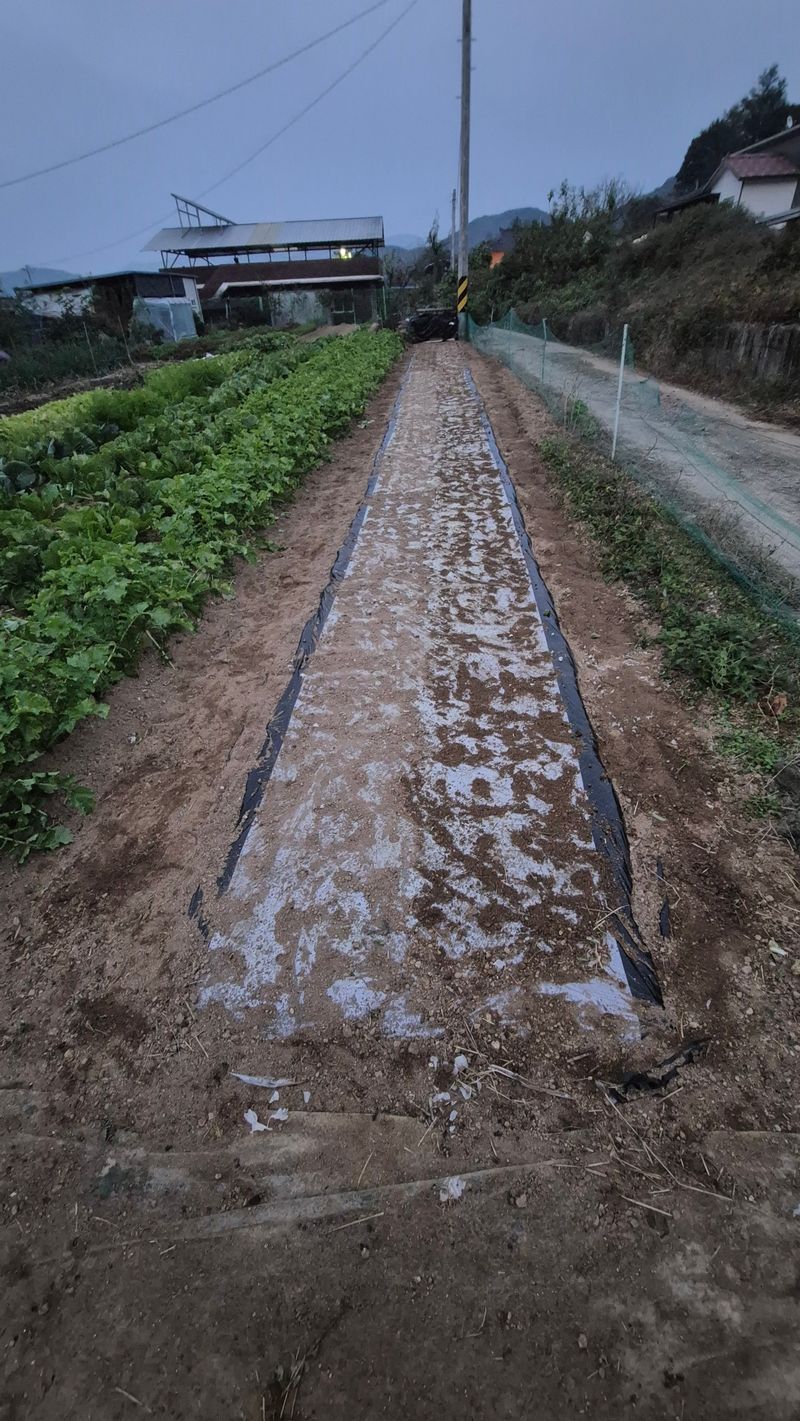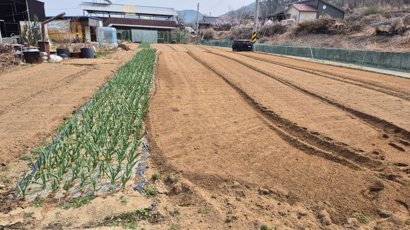 마늘밭 방제작업 영양제(칼슘) 살균제(탄저, 녹병) 살충제