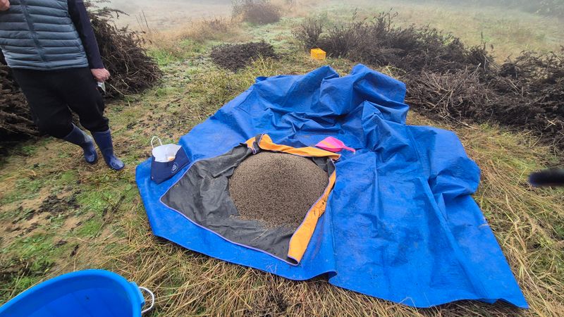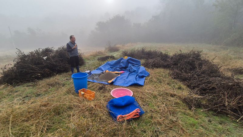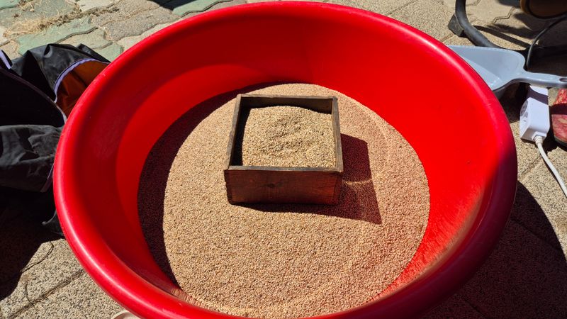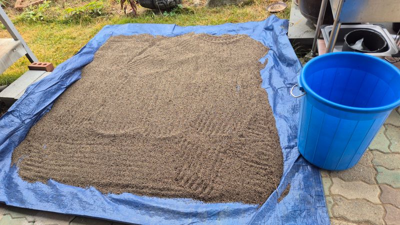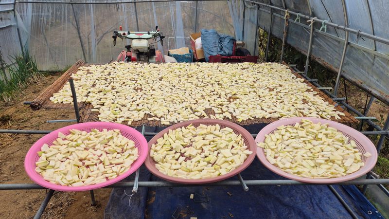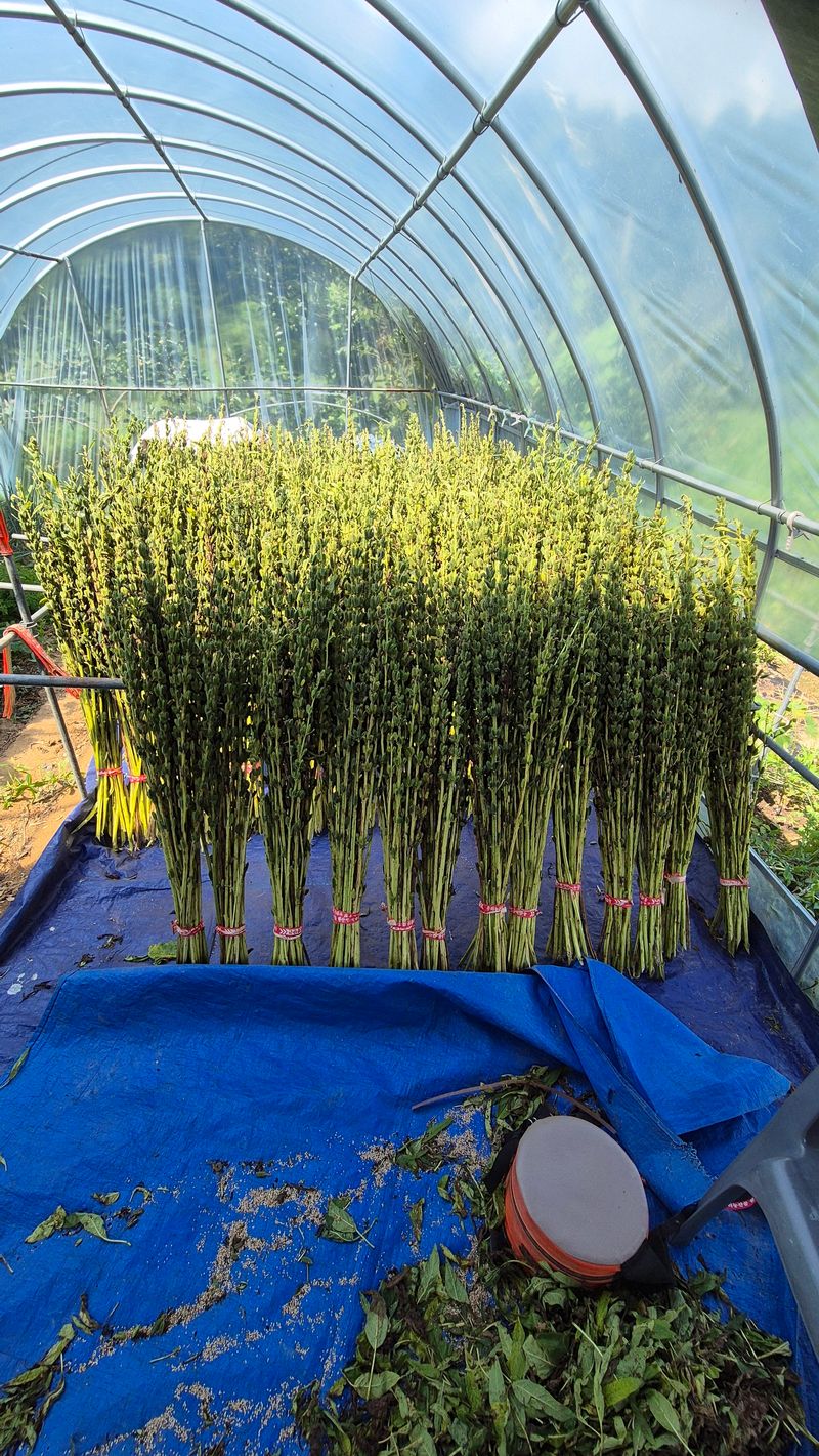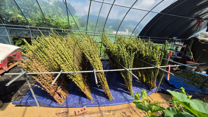 참깨수확하여 묶어서 하우스에 세워두었네요~~~^-^