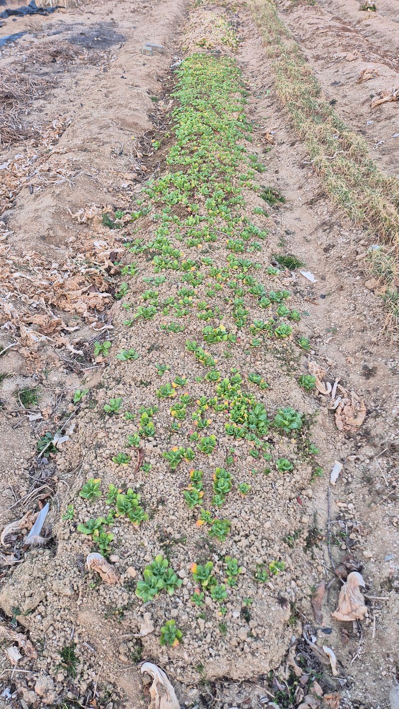 마늘 싹이 올라오고 있네요 부직포 제거후 토양살충제 살포 및 웃거름 살포