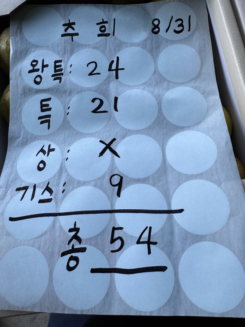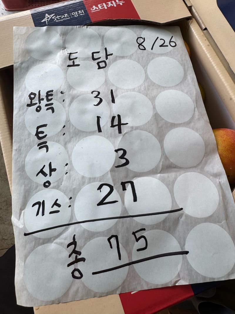 오전 개낫 낙과 12.5 박스 줍줍 개낫 미시마 9 박스 수확 오후 개낫 미시마 24박스 수확(2박스 쏟음) 오늘 총 33박스 수확 ((현재 미사마 총247 박스 수확))