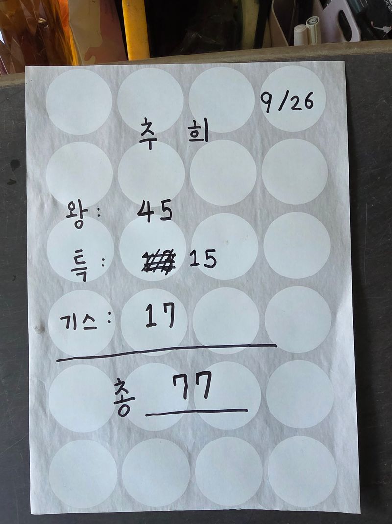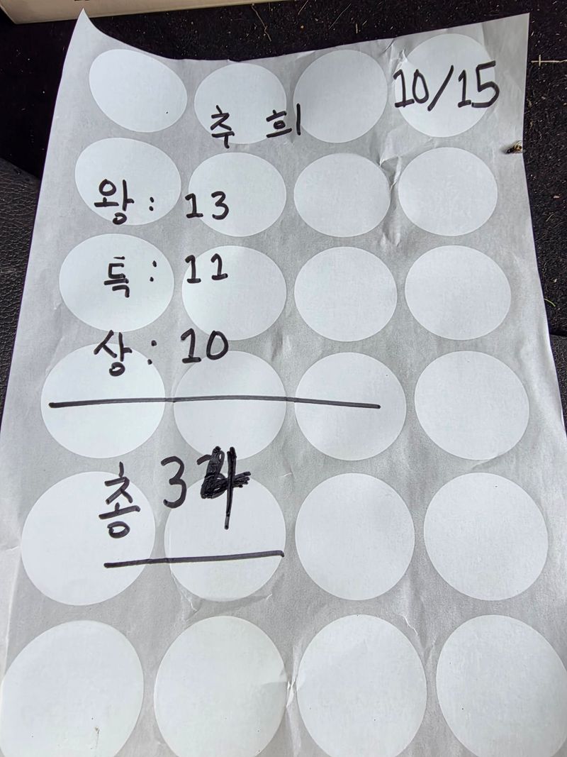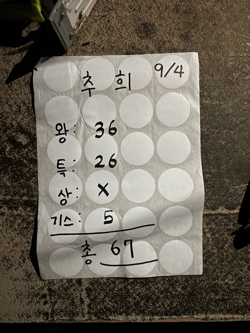 오전 추희 산소밭 위 39개 수확 추희 산소밭 아래 11개 수확 오후 추희 도담밭 9개 수확 추희 산소밭 아래 9박스 수확