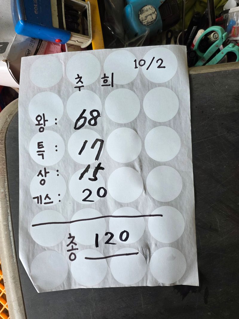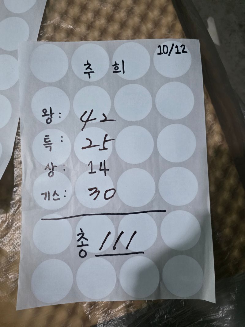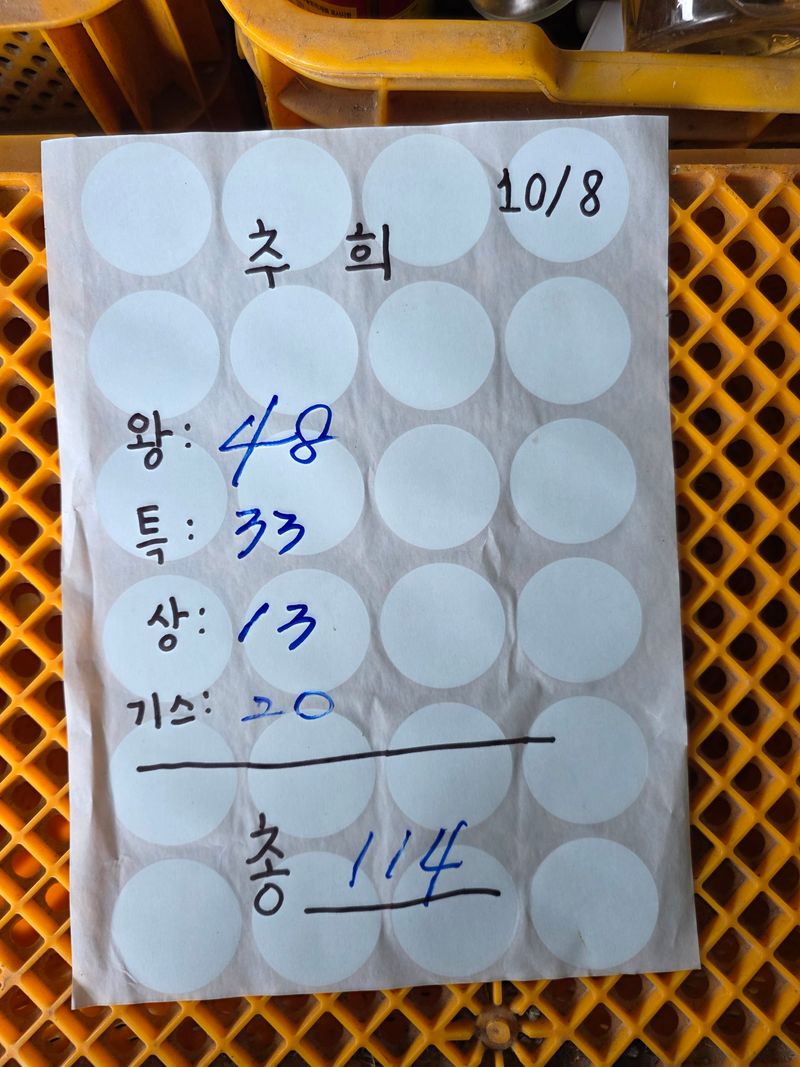 오전 추희 공판장 114박스 포장 오후 추희 공판장 108박스 포장
