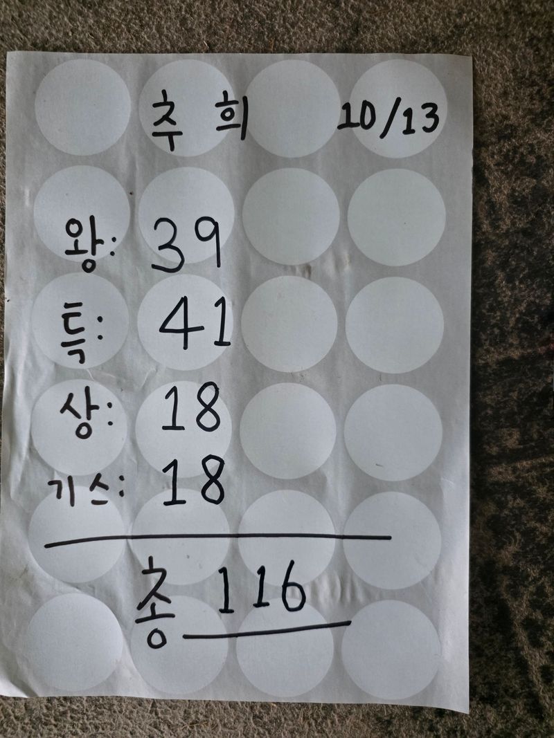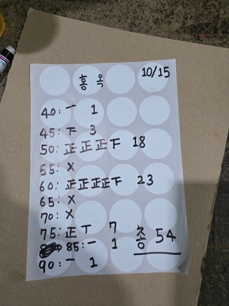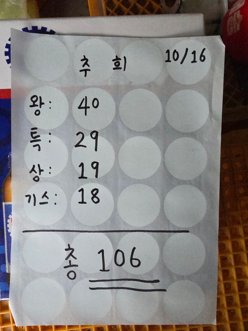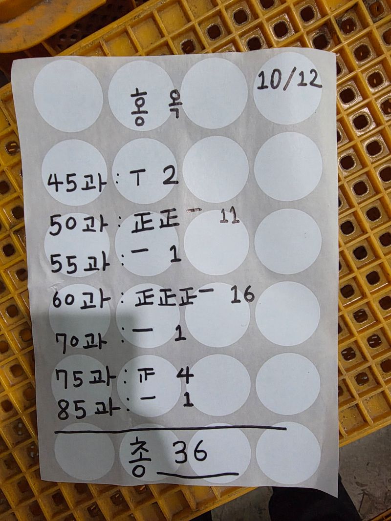 오전 추희 공판장 116박스 포장 오후 추희 익일 공판장ing 홍옥 금일 공판장 시세 45과 : 68,- 2박스 136,- 50고ㅏ : 65,- 11박스 715,- 55,60과 : 55,- 17박스 935,- 70과 : 40,- 1박스 40,- 75과 : 30,- ...
