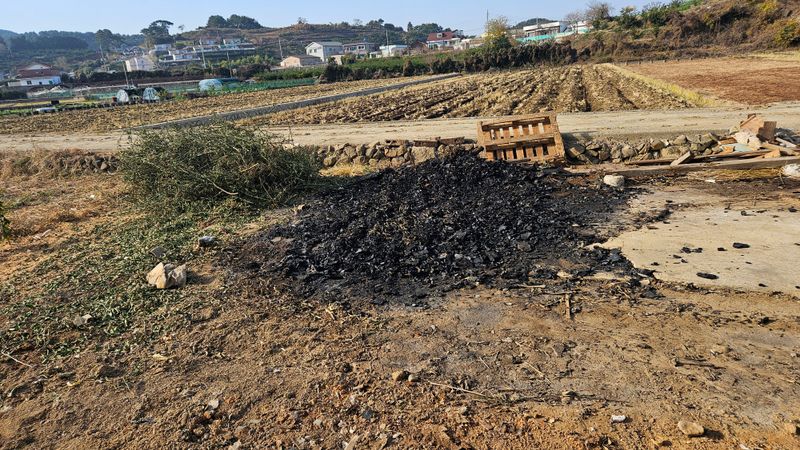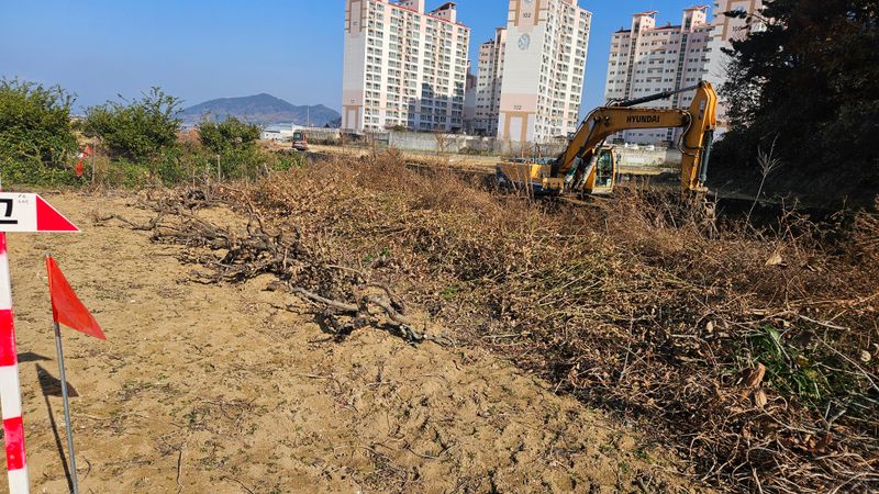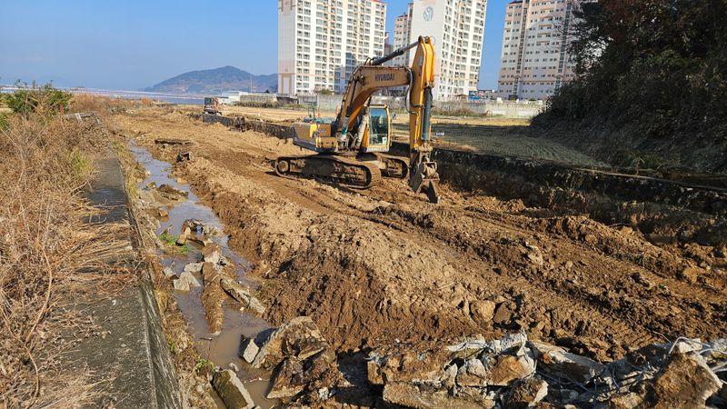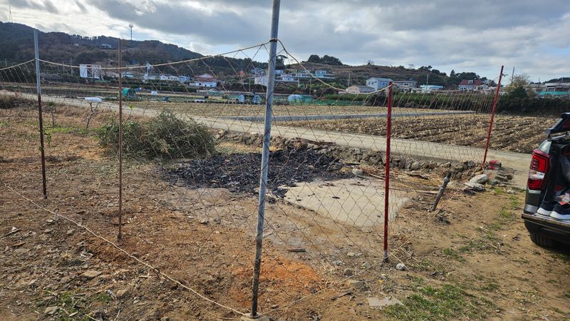울타리망 설치 하천 현장소장 만남 밭에 흙 채우는것 이야기함
