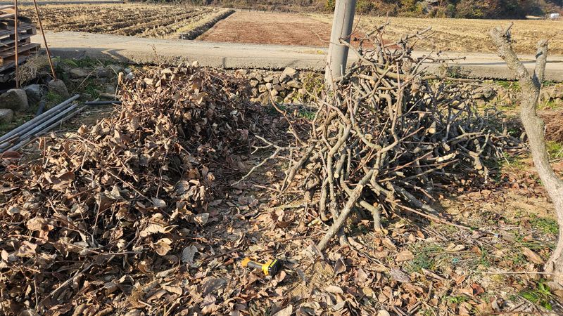 감나무, 매실나무 잔가지 정리 고추따고 뿌리뽑기 완료 홍고추 순환이 쪽파는 저녁에 파전