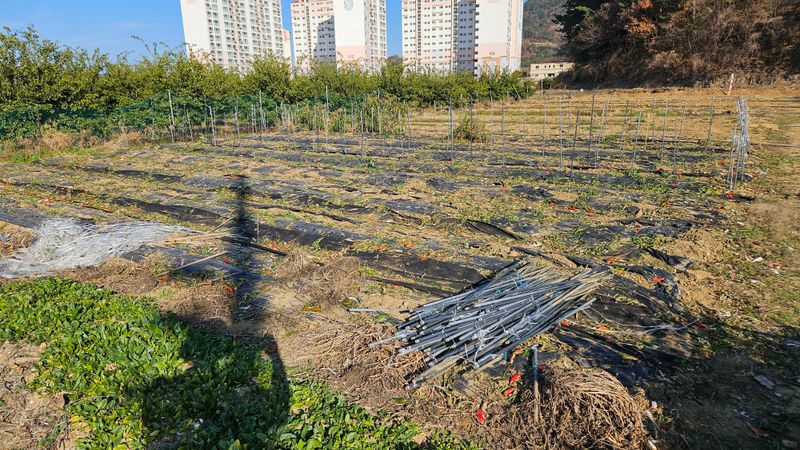 고추 말뚝제거 완료 고추밭 부분적 비닐제거 유자심을 자리 거리제고 말뚝박기 밑에 밭하고 같이 72주 가능함 자연산 굴 이만원에 구입 종식이 자연산 감성돔 가져옴 칠천도 출렁다리 구경