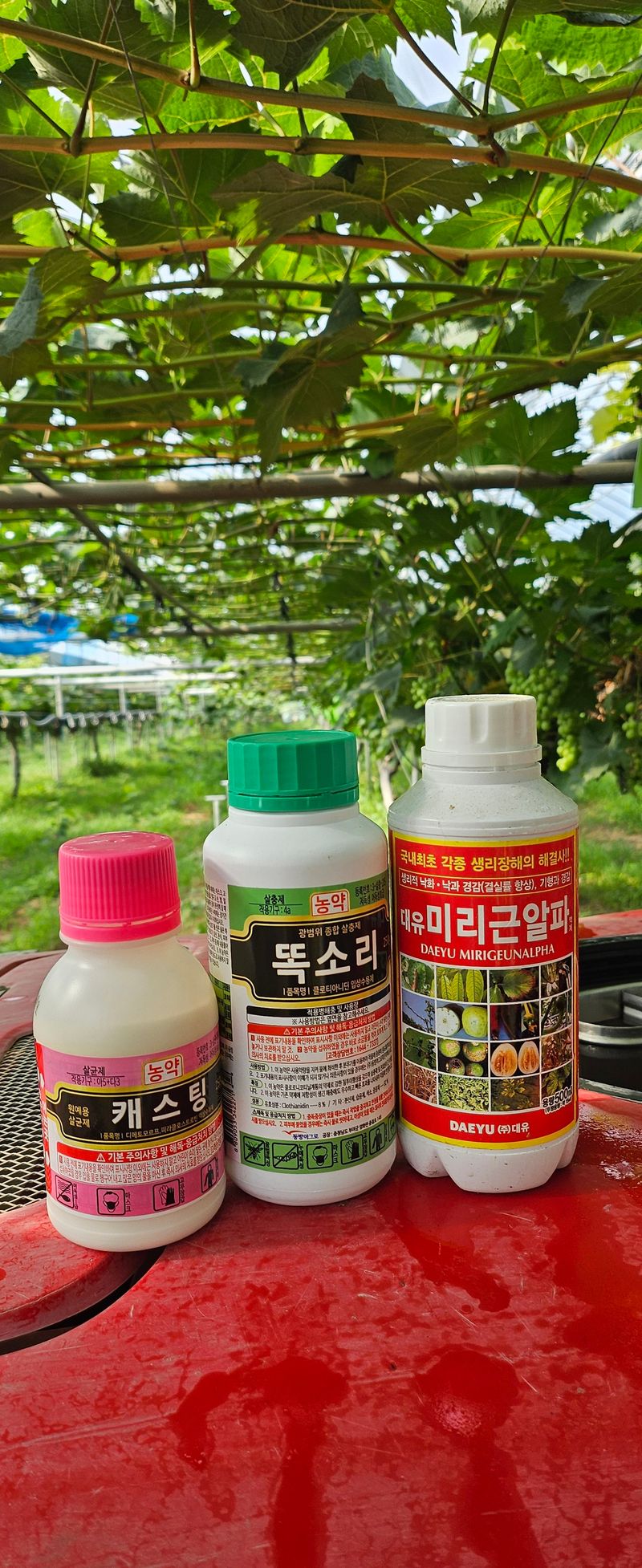 농약 살포 (북산리-살충제 똑소리,살균제 프로키온,영양제 미리근 알파. 3농장-살충제 똑소리, 살균제 프로키온,영양제 영일칼슘. 하우스- 살충제 똑소리 ,살균제 캐스팅,영양제 미리근 알파)