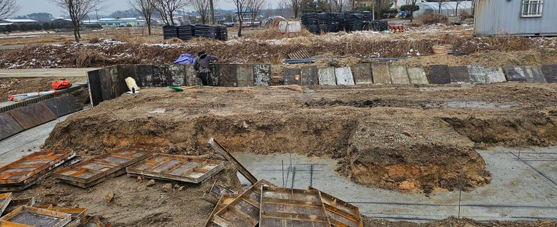집 거푸집 만들고 철근 설치 하우스 유목 꺼내기,달아매기.