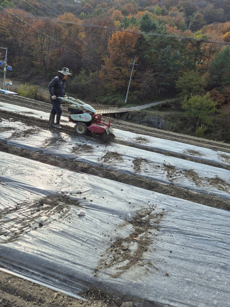 마늘밭 비닐 덮기