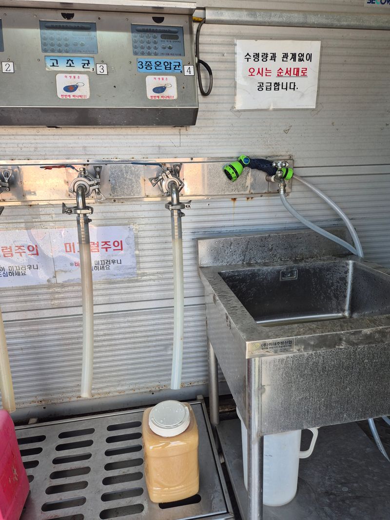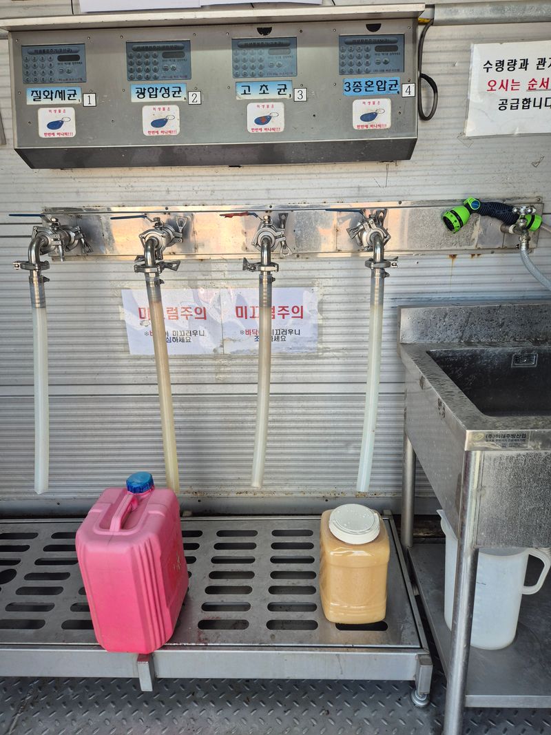 기술센터 미생물 받아왔음 광합성균5L + 3종혼합균5L=10L 음식물 통에 3L+3K=6L 넣어놓았음