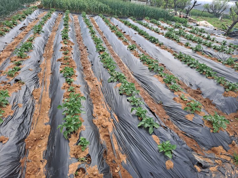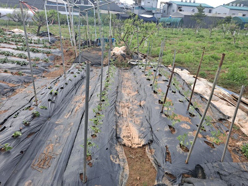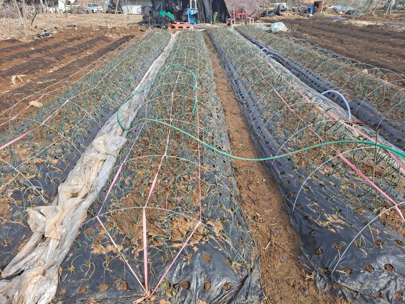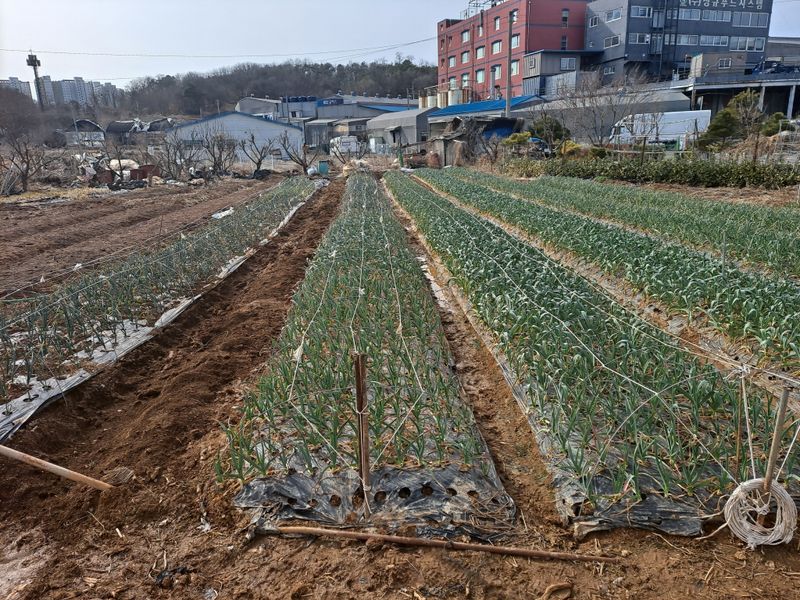 마늘 밭 양파밭 비닐 걷고 풀 뽑아주었습니다. 이제 감자밭 만들기 위해 퇴비 살포 하구 밭 전체 퇴비 비료 유박 살포했습미다.