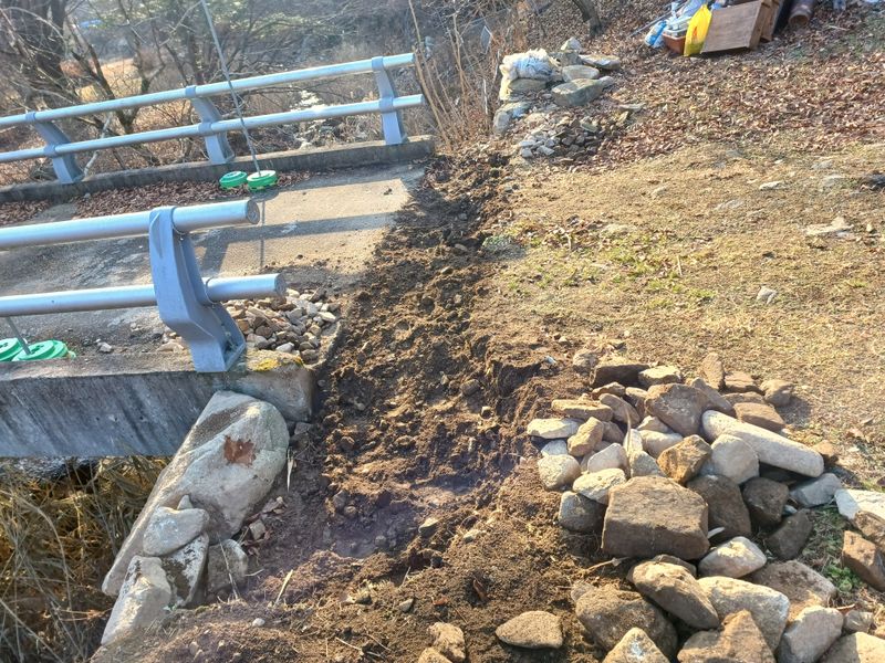 유해동물 방지 휀스설치 42미터/ 산쪽ㅡ명이밭까지 126미터 설치완료 사과 수확 완료 20여개 배추1.무우1.대파5.부추 수확