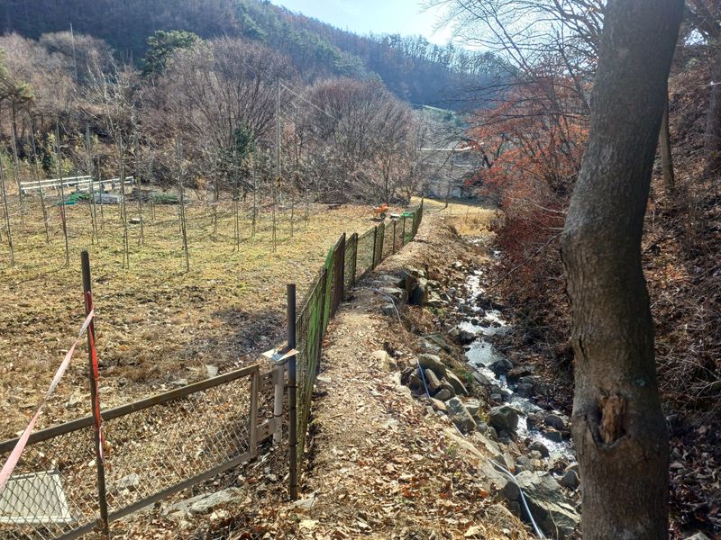 유해동물 방지 휀스설치 산위 84미터 설치 완료 사과.자두 이끼제거제 살포 배추 무름병약 살포