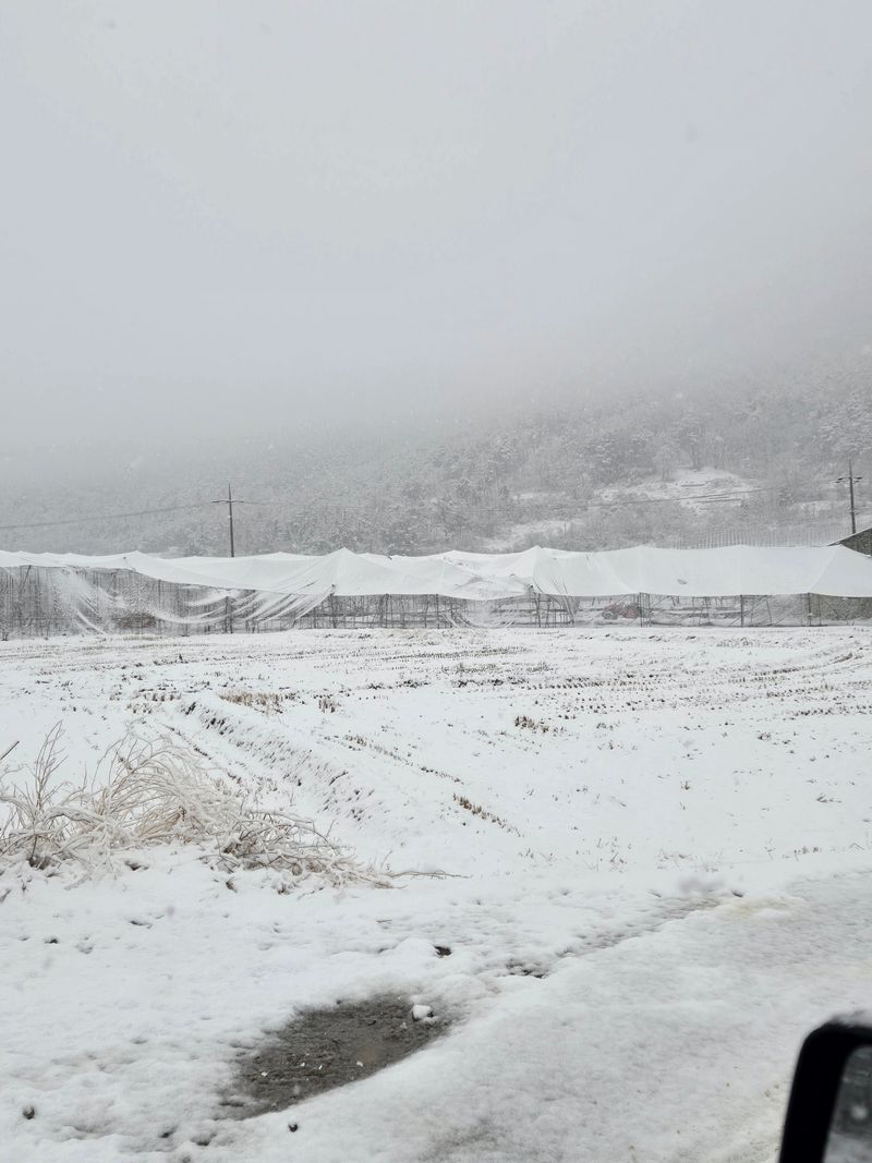 오후2시경부터 눈이왔어~ 방조망 눈 털기작업 했음