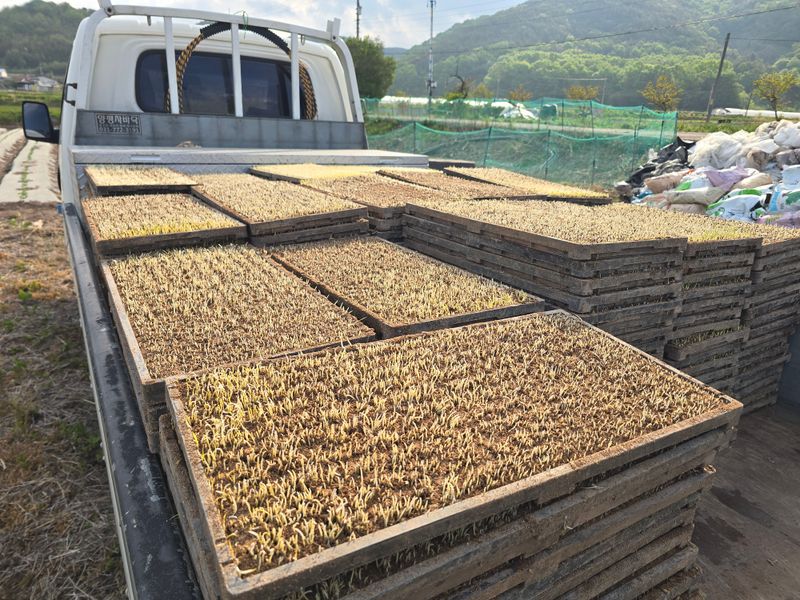 벼 싹티워 논에 갔다넣었습니다 잘자라다오~~^^