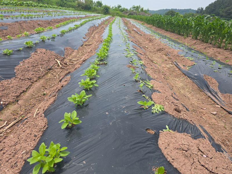 심고 많은비와 종자소독없이 심어 비둘기피해로 반타작해버린 콩밭 김매기했습니다