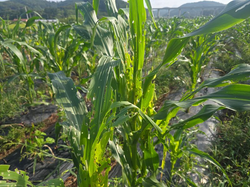 가을 옥수수는 첨인데 알수없는 해충으로 부터 공격받고있다 에이 충약이나 먹고 떨어져라