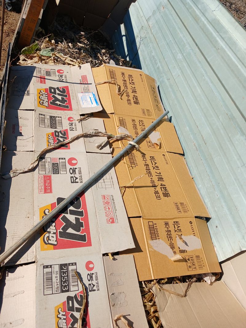 수박, 사과참외 고랑 콩대, 음식물쓰레기,낙엽, 퇴비 흙으로 덮고 부숙하기 5월초 모종 심을 거에요.