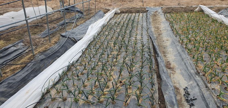 홍산마늘, 주아마늘, 양파, 장열대파 부직포 걷기 및 제초작업, 살충제방제, 추비주기