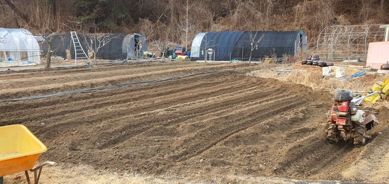 감자 식재예정지 미생물 관수 고추 식재예정지 미생물 관수 4번하우스 정리 및 대청소