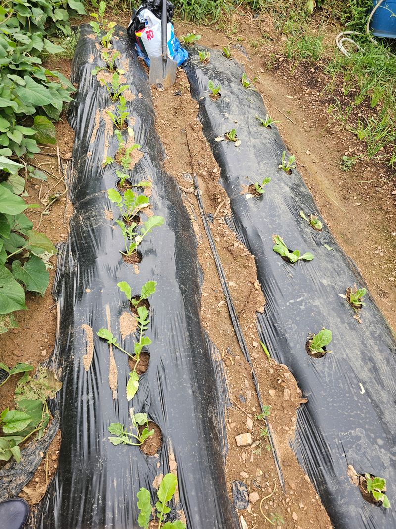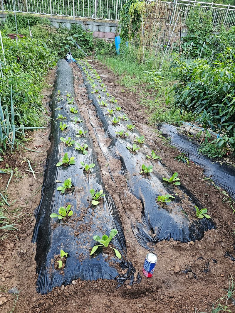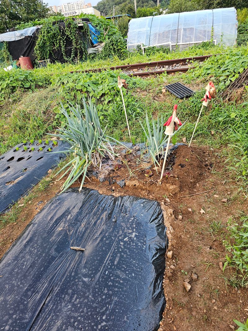 고추 따고 뽑고. 배추모종사다 심궜는데 날이 더워 말라죽어 다시 추가로 무우배취 심궜음. 다 살아남길 바라면서