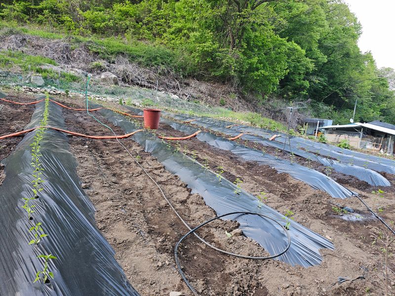 강원도에는 이제 날씨가 좋아져 고추 모정을 하였습니다. 그리고 엄나무도 심었습니다
