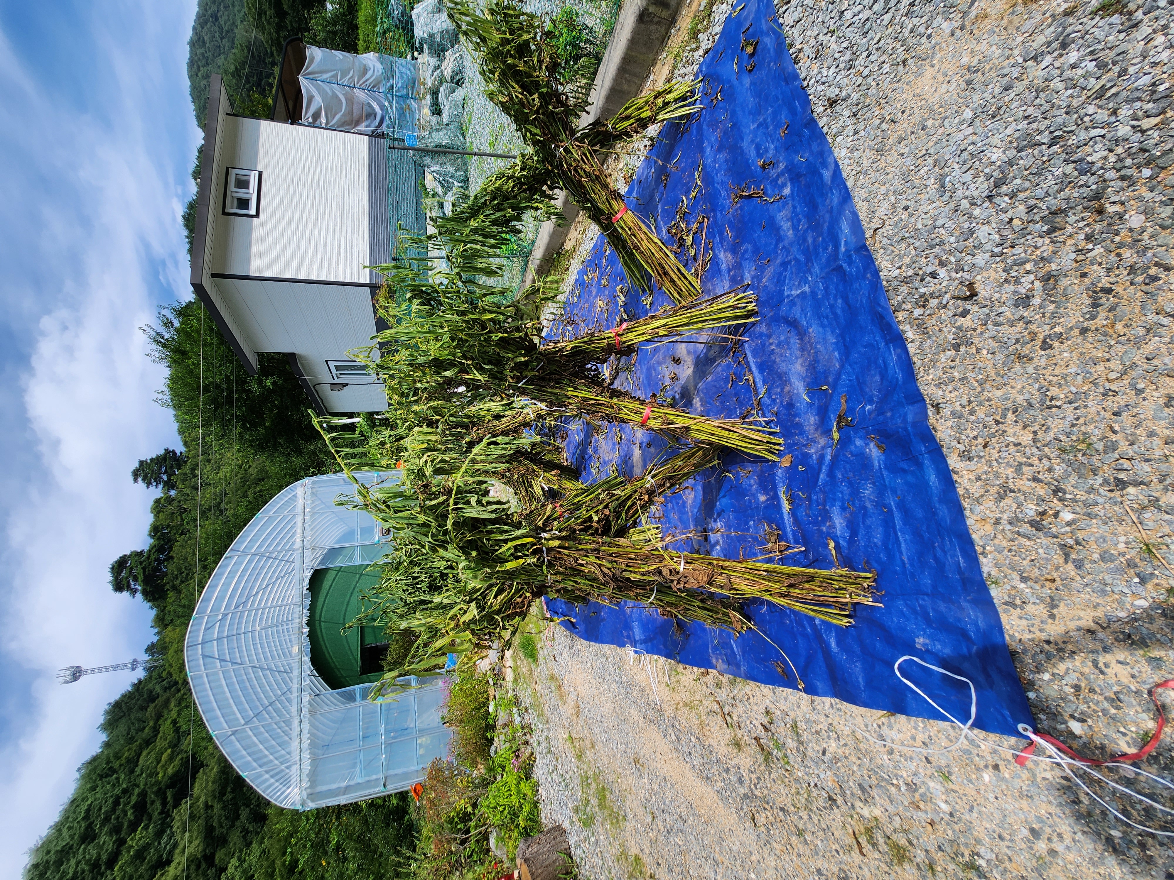 비피해로 참깨밭도복이 심해 참깨 세우기작업했어요..허리가 너무아프네요