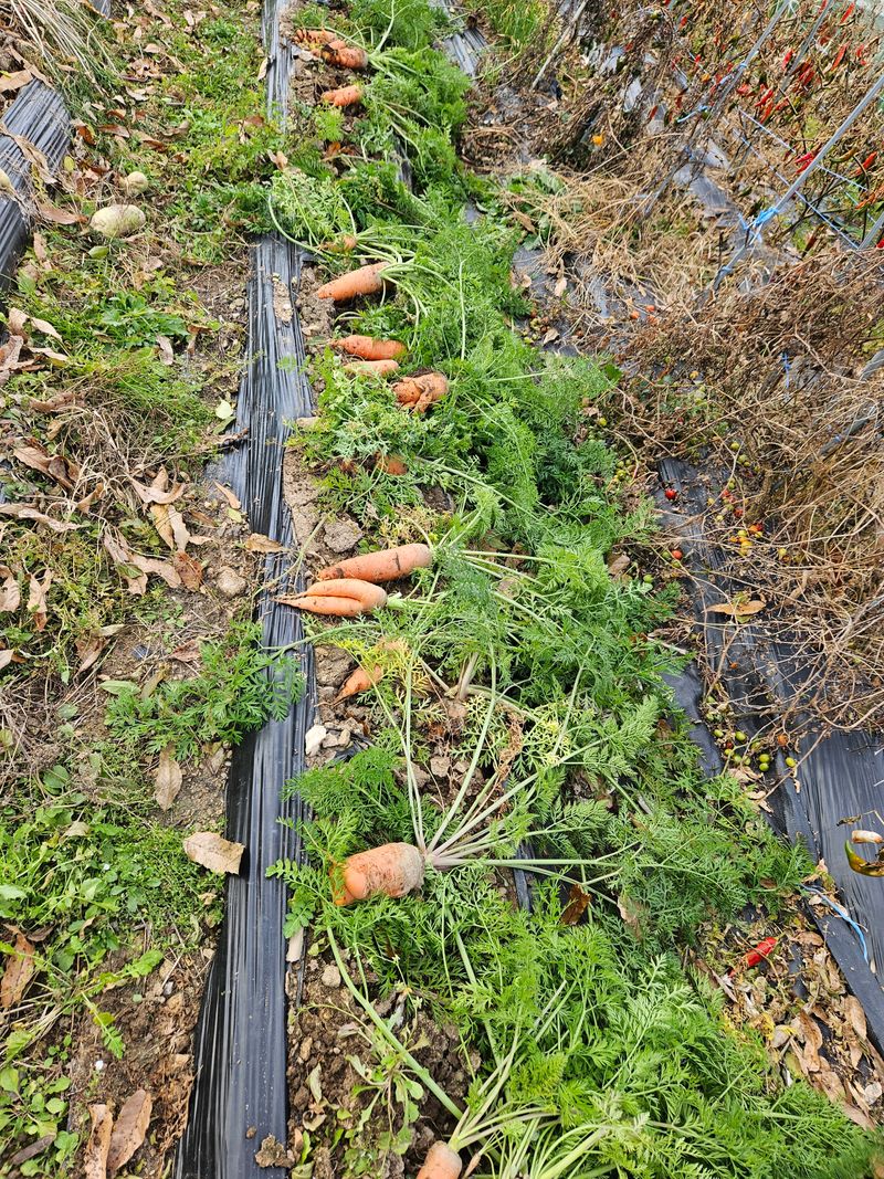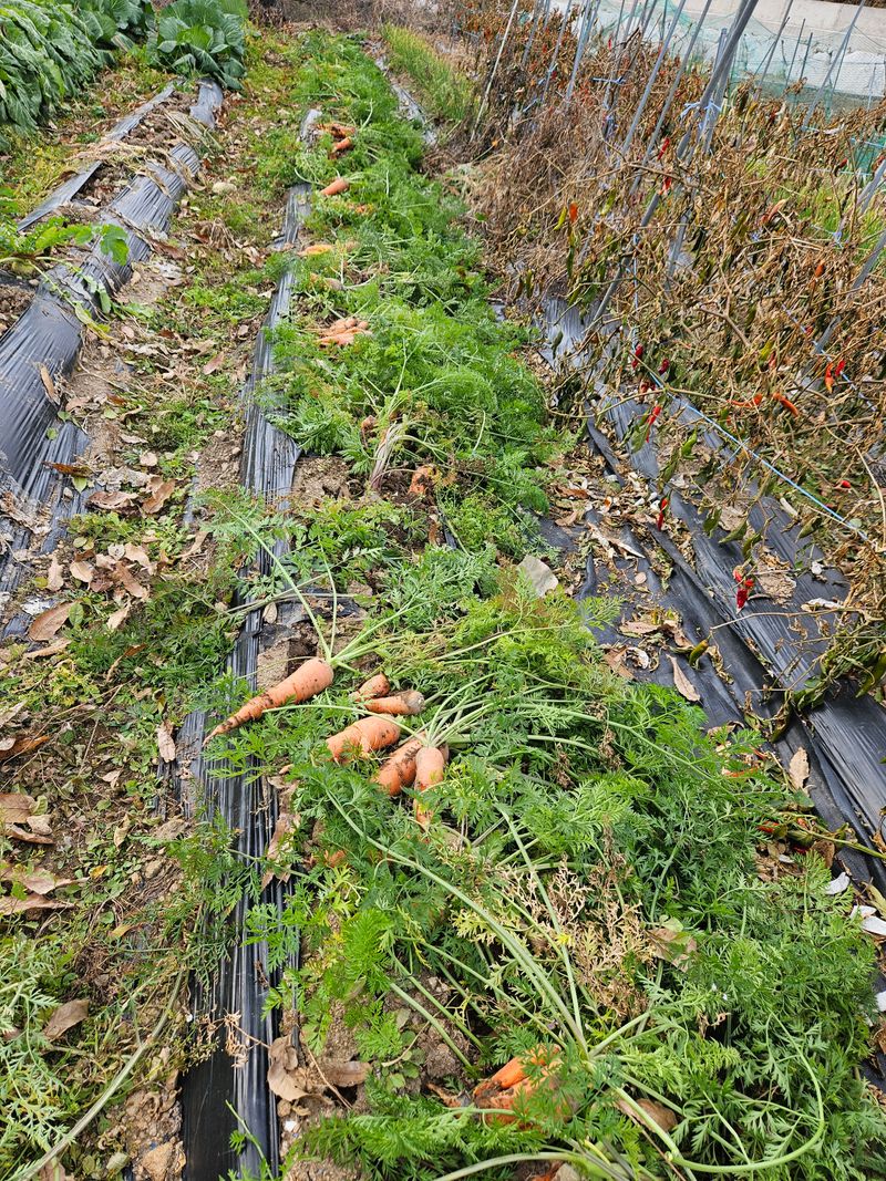 당근과 무우를 뽑았다 당근은 뽑기는 힘들었다