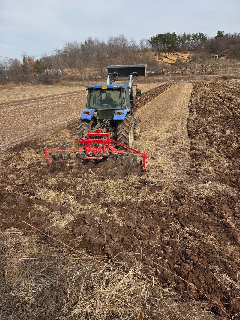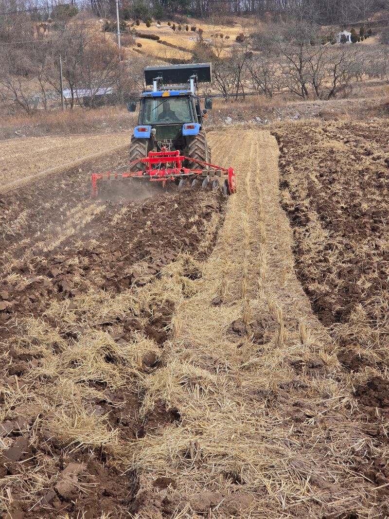 로타리 작업과 동시 파종 작업 약제 살포