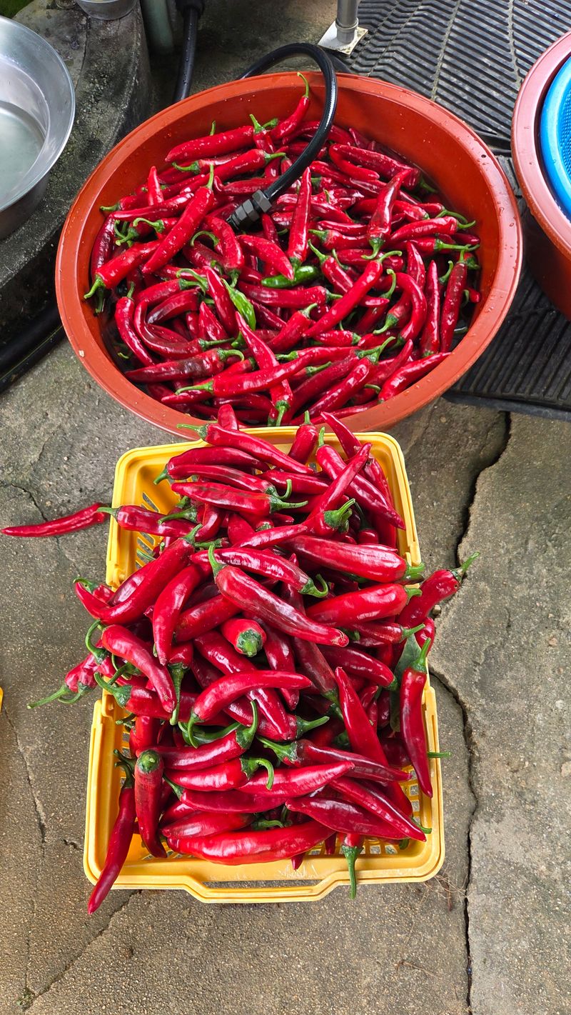 고추 수확, 관수,고추 세척