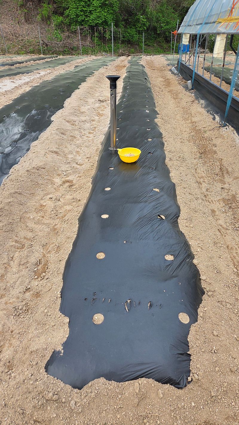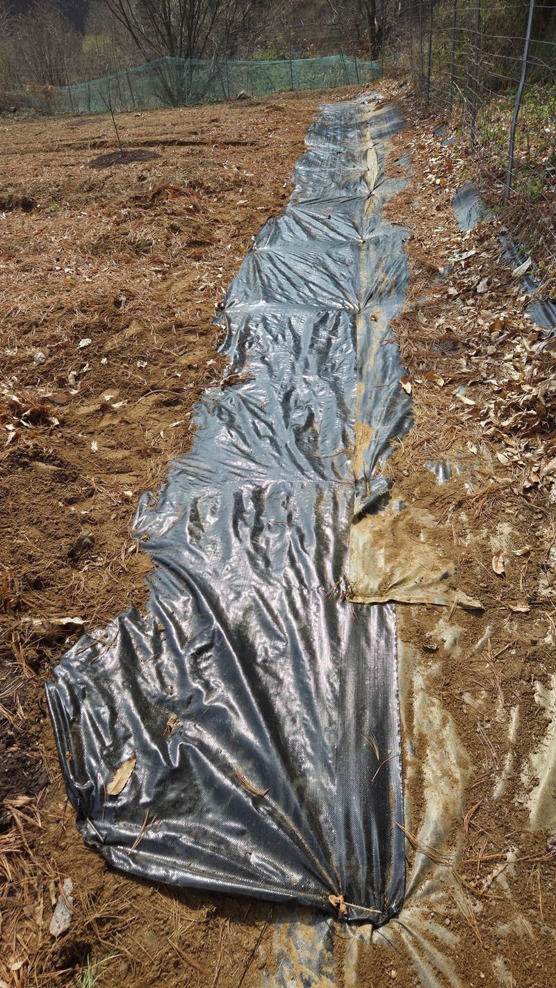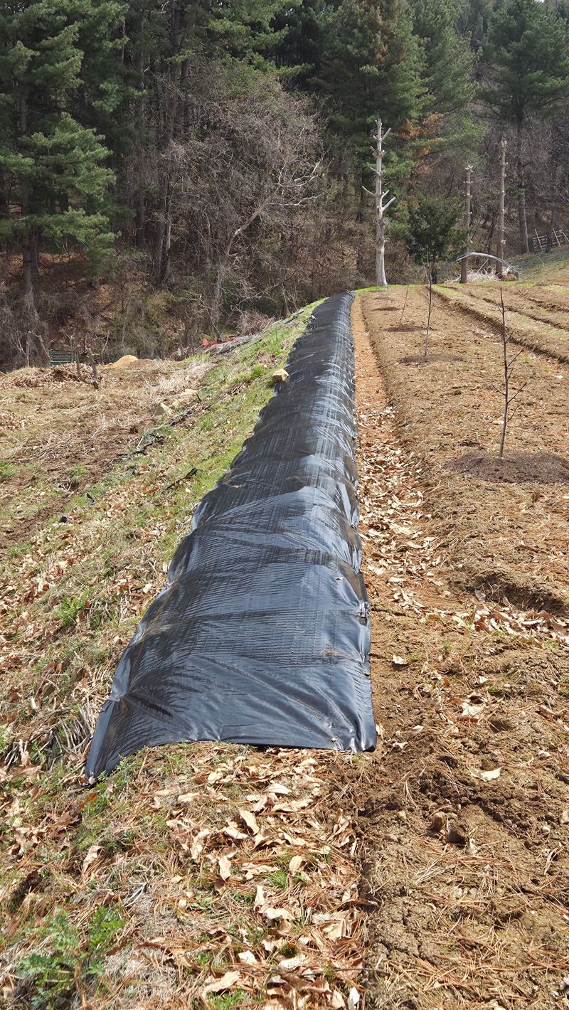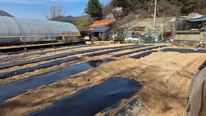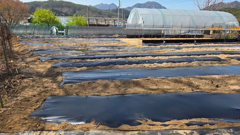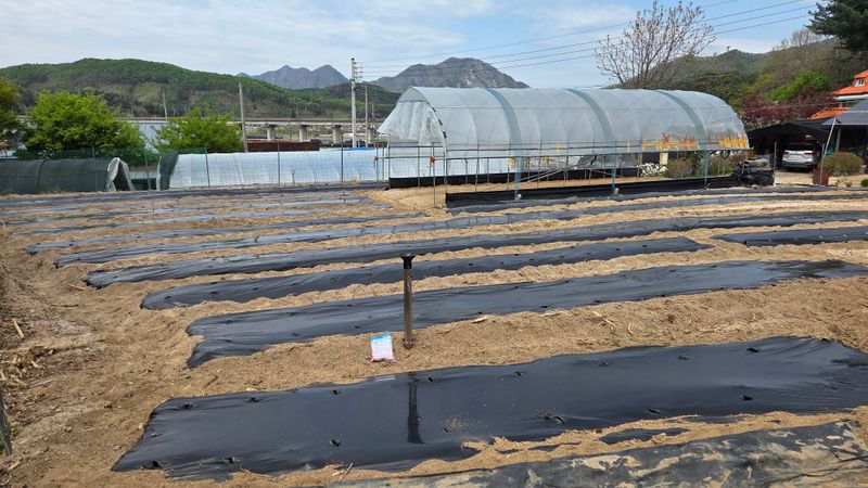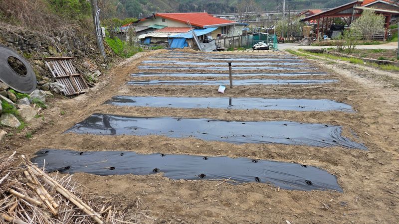 호박 하우스 망씌우기 잡초매트 씌우기 옥수수 멀칭비닐 타공