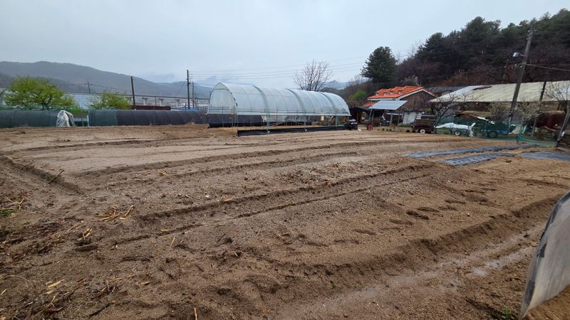 옥수수 씨앗파종 강낭콩 씨앗파종 하우스비닐 멀칭,관수 호스설치 노루망울타리 설치