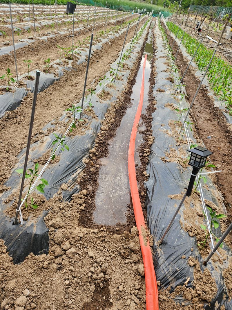 노지고추칼탄450포기심고 지주대설치및유인줄작업중입니다