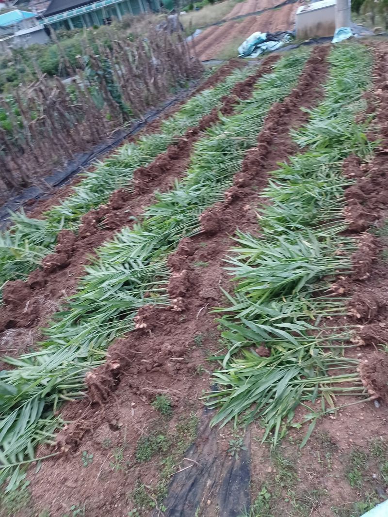수확한 생강세척하여 냉해 대비 . 줄기도 좋다고하여 건조시시킬예정