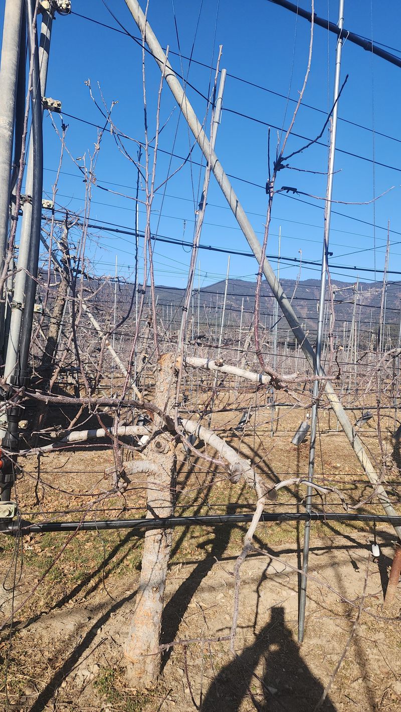 동계전정 복잡한 측지, 처진측지 잘라내고. 보란병 감염가지 잘라내고. 주지 부란병 감염부는 전기톱 앞날을. 이용 발병부를 긁어내고 튼실한 꽃눈을 두고 결과지 밀어넣고, 등따고 배따고 끝은 가볍게 하고 잘라낸 부위, 부란병 긁어낸 부위 톱신 + 아테미 혼합된것을 발라주...