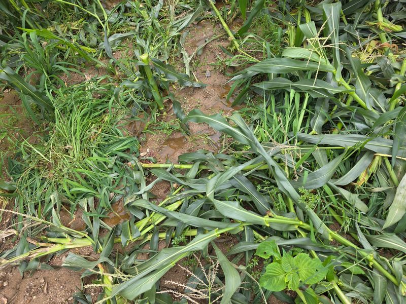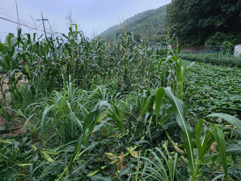 옥수수밭에 멧돼지가 들어와 옥수수를 다시 심었다