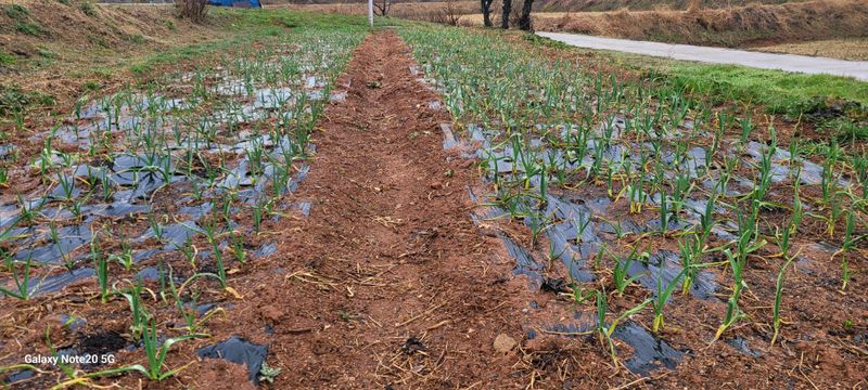 비가 오니 월동했던 작물들이 기지개를 펼 것입니다. 마늘 양파는 2.27일 요소비료 300평에 35kg를 1차 추비한 상태입니다. 3.13일경 토양살충제 뿌리고 이후nk비료로 2차 추비 예정입니다
