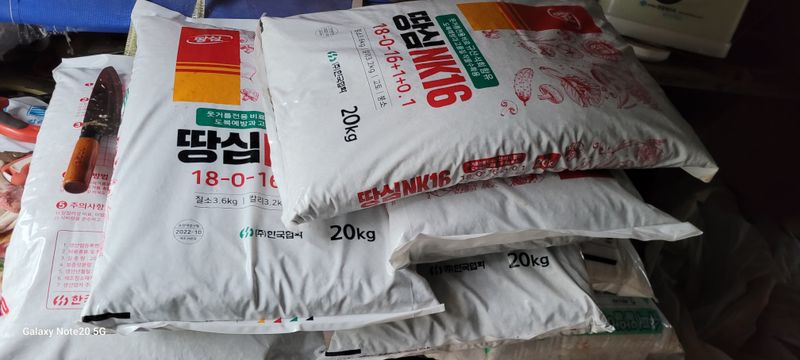 마늘 양파 2차 추비 nk비료 400평에 20kg4포 살포