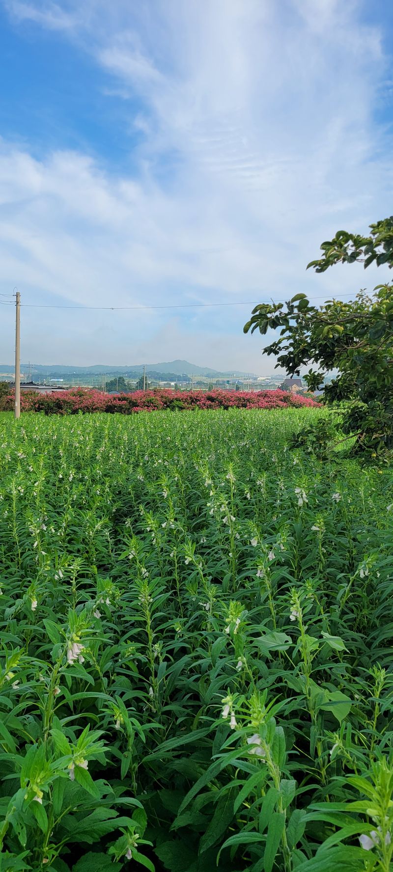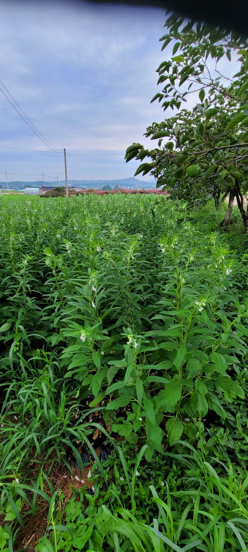 6.18일 양파 수확 후 참깨씨앗을 직파하여 어제,8.10일부터, 키가 1.5m로 아주 잘자라서 적심, 들서갔읍니다