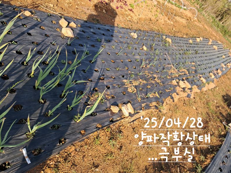 작년(2024) 11월초 파종한 양파가 거의 대부분 자라지 않았습니다. 좀 추운 파주지역인데 검은색 비닐멀칭만하고 그외의 보온 조치 없었던 원인인지. 많이 속이 상하군요. 지금 심어도 희망은 있을까요? 고수님들 경험으로 고견을 구합니다.