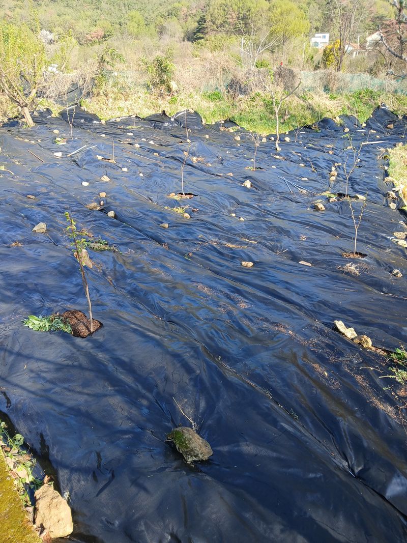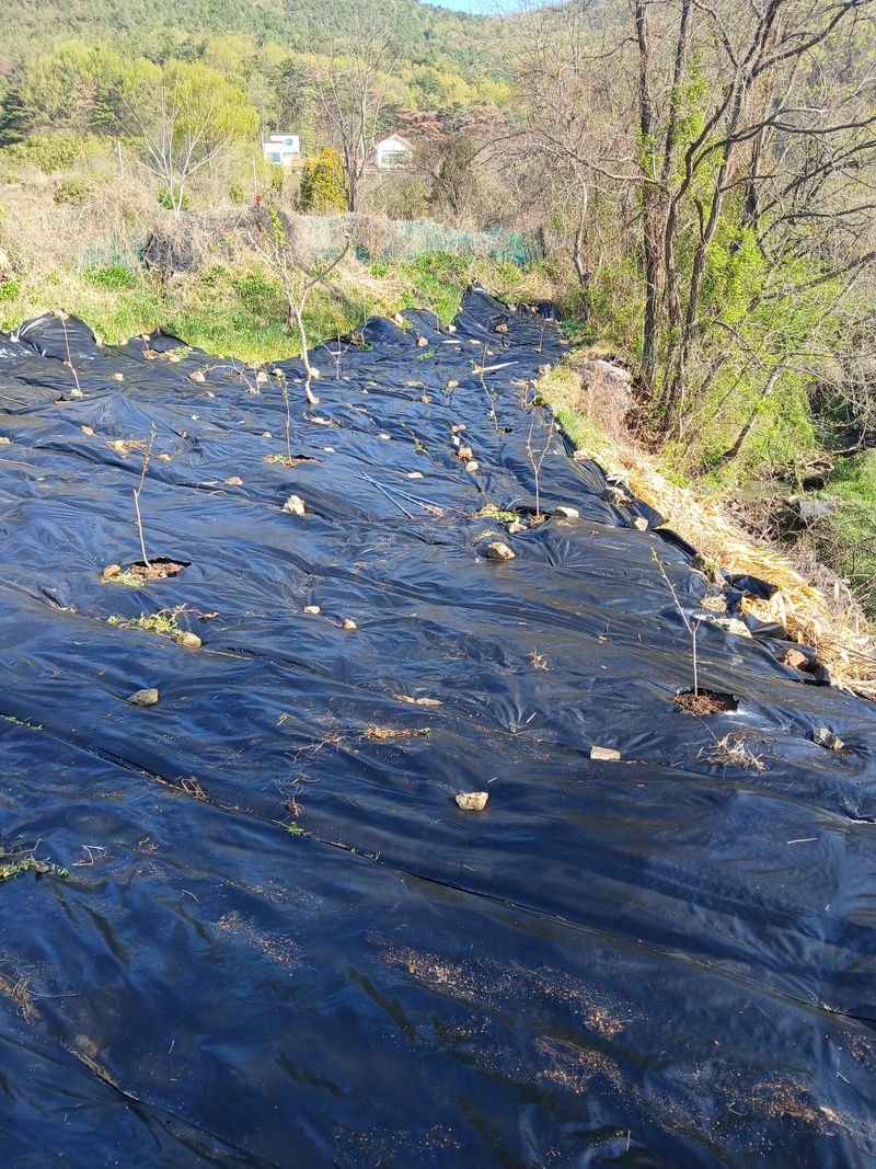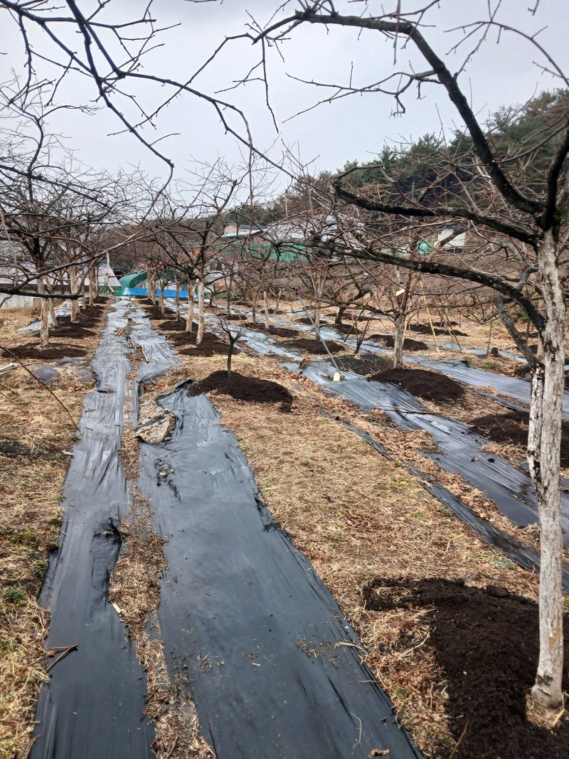 복숭아밭 제초매드 깔기