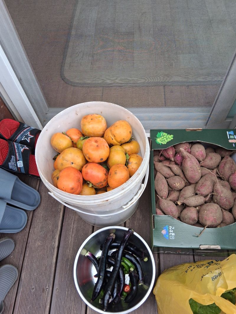 1)감 2Box따고 2)고구마 5Box캐고 내일 캘것 순걷고 비닐걷고 캔 줄기 파쇄(완)