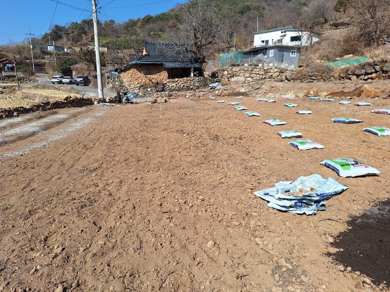 파종! 30평에 퇴비 6포. 복합 1./4포. 입제 살충제!