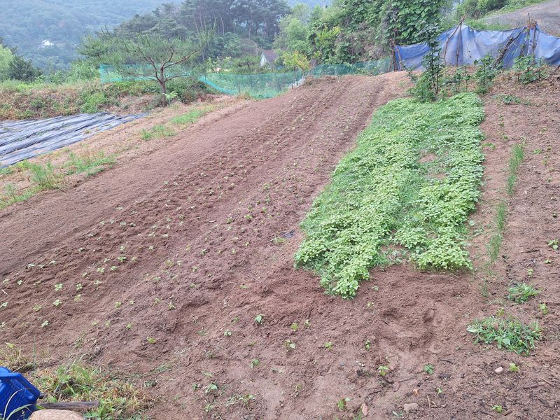 퇴비넣기. 채전밭,감자밭, 고구마밭 믿거름 넣기!!