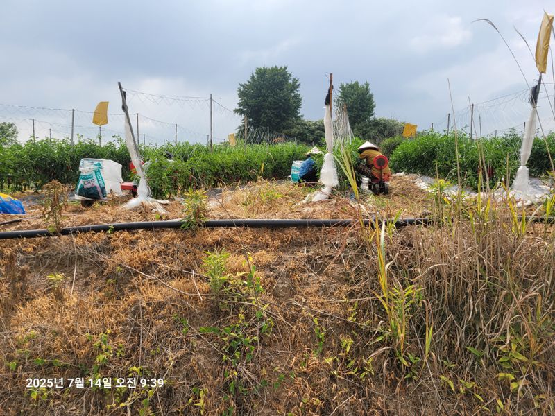고추줄매고 있습니다 재배면적 5000평 품종 팔방미남