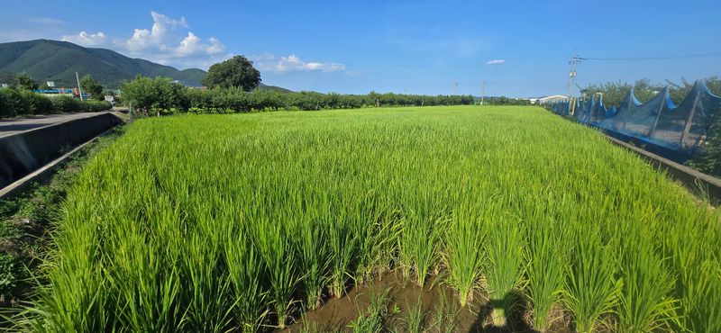 벼농사 중이며 개인적인 도정과 개인적인 포장을 통해 나누고 있습니다