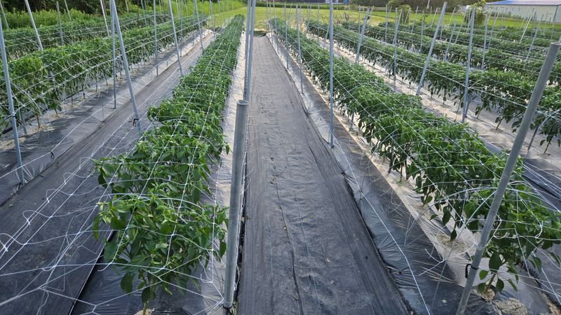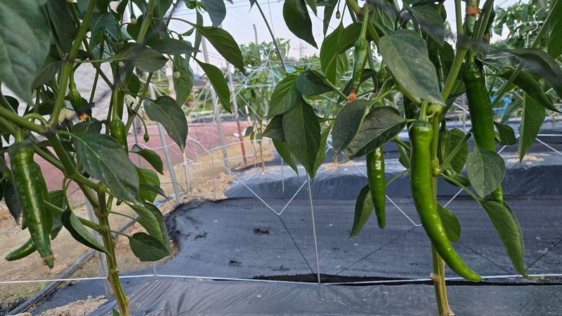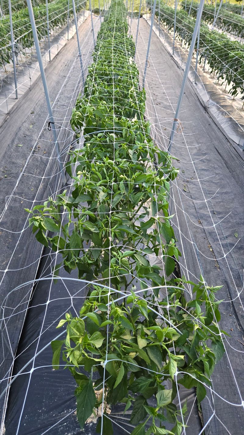 고추망 12이랑 설치하였습니다. 칼라탄골드 삽목 200개. 명장칼탄 200개. 돌격에최강 청양 100개.. 2025. 4월 16일 정식한 고추밭 모습입니다.