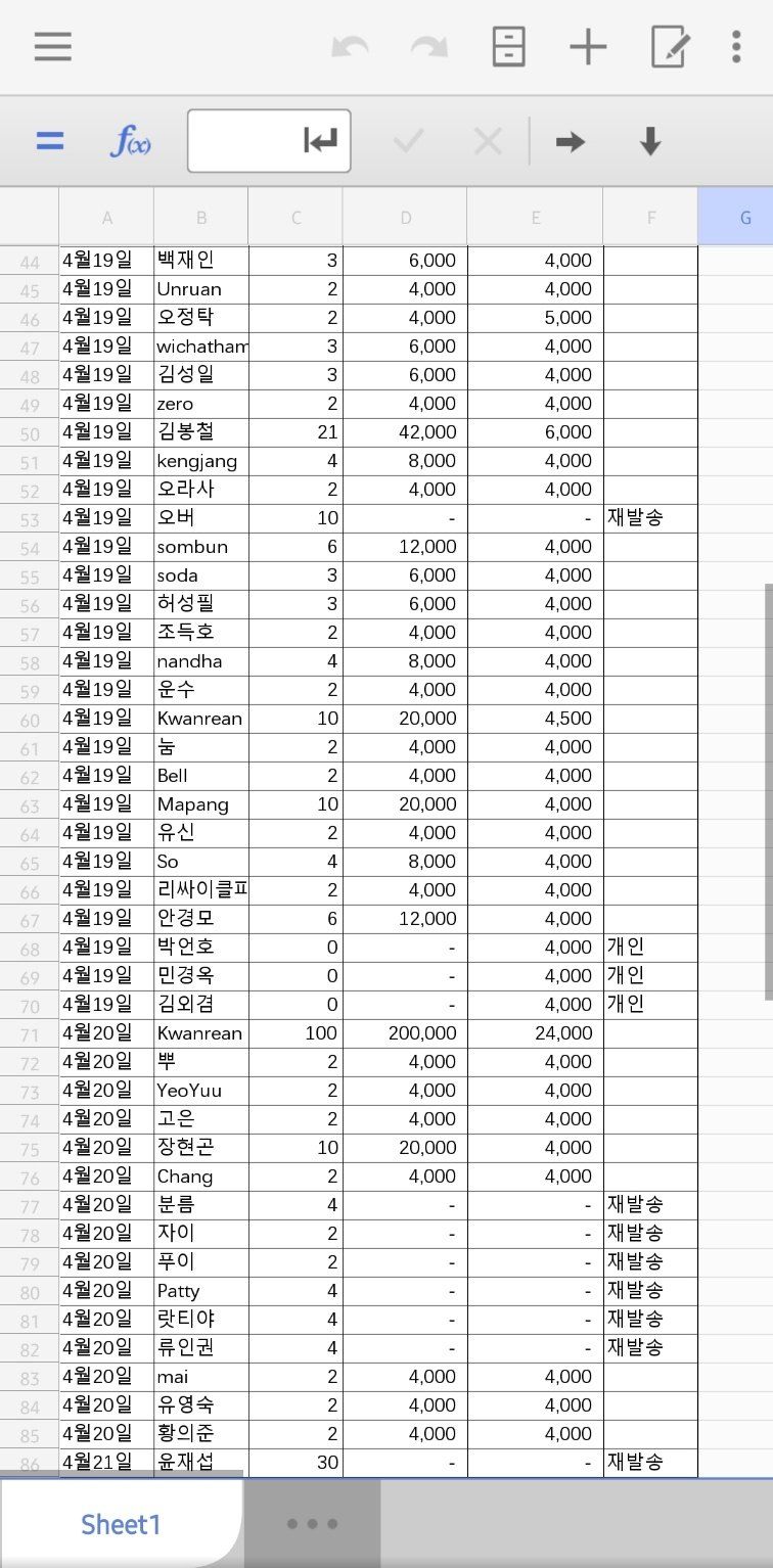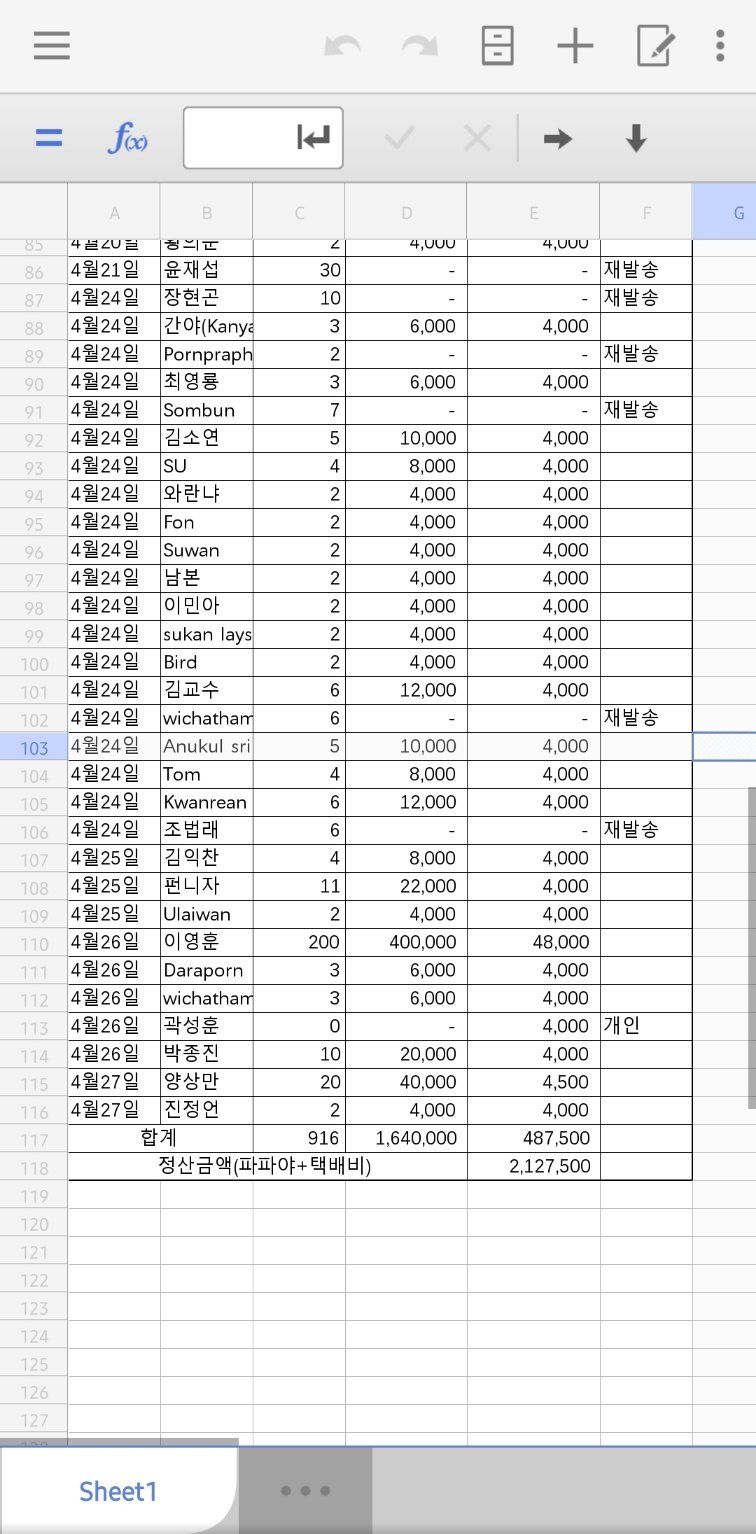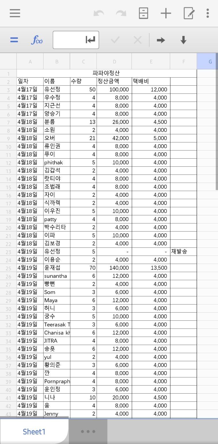 파파야 30 만원씩 나눠가지고 100 만원 공금으로놔둠