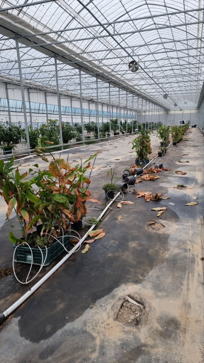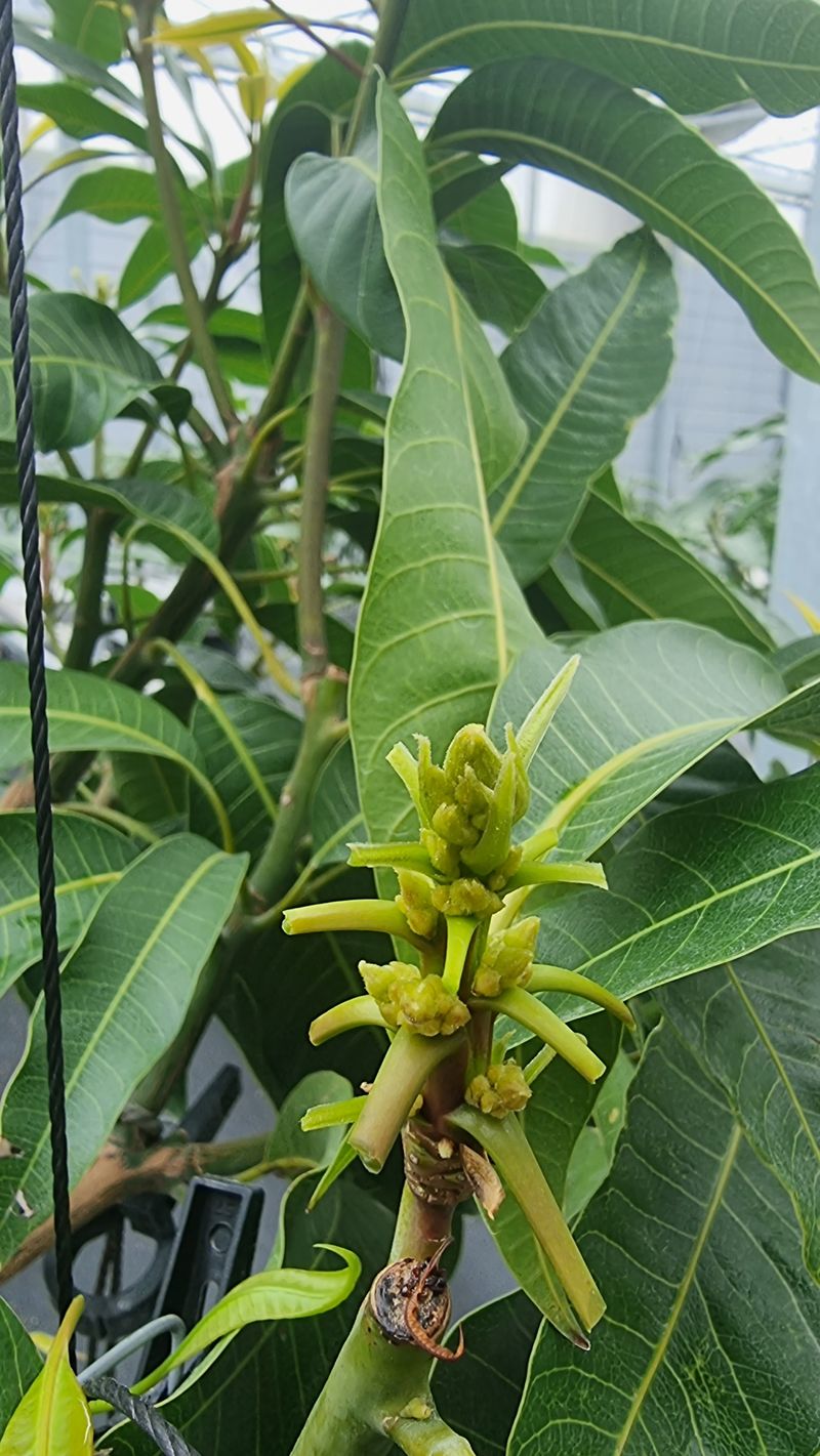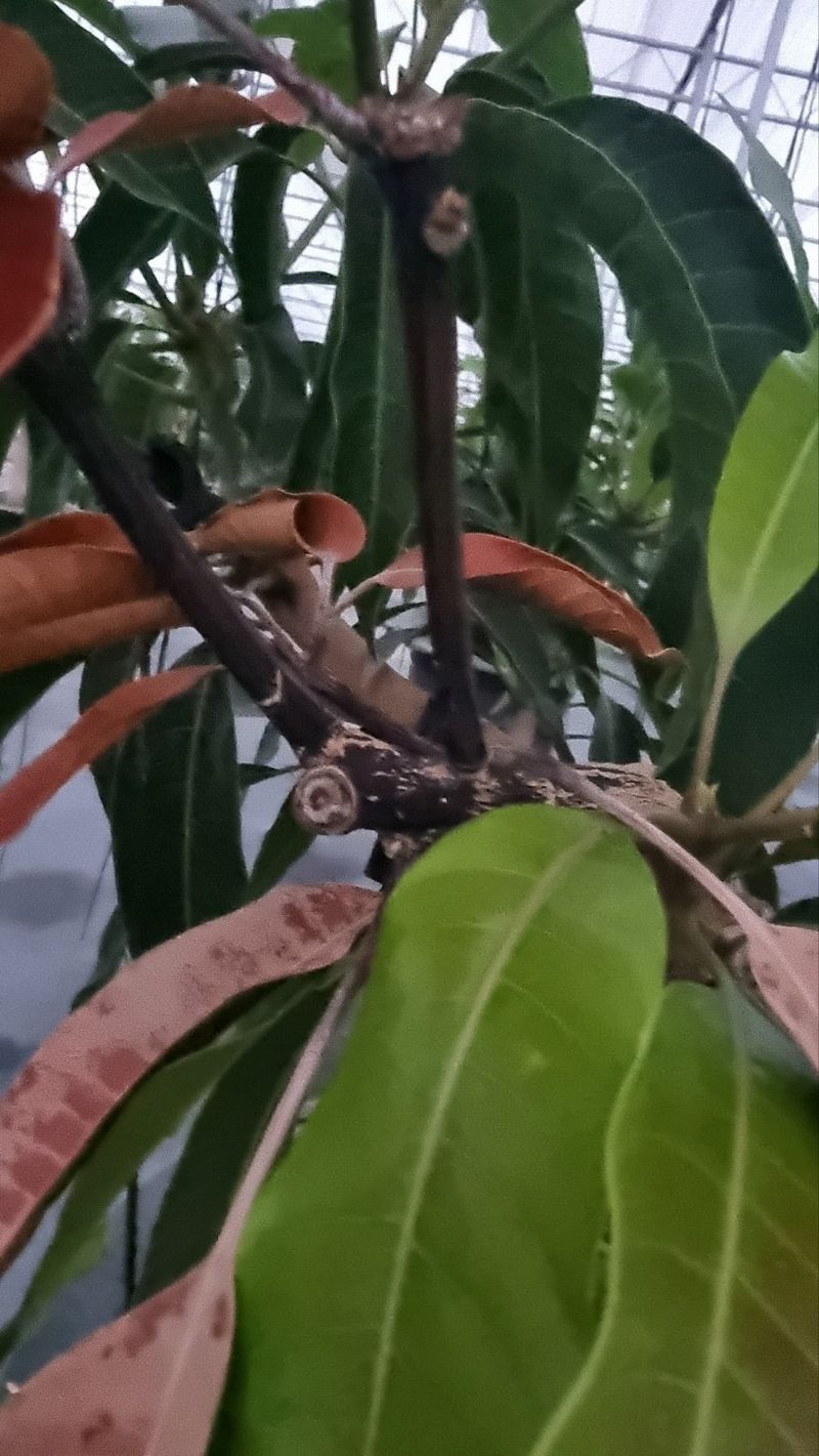 - 망고농장둘러보기 둘러보다 주화자리 가지마름사진보내고 자름. - 영철자리도 가지마름 발견. - 농촌진흥청.강소농견학옴 - 총채발견